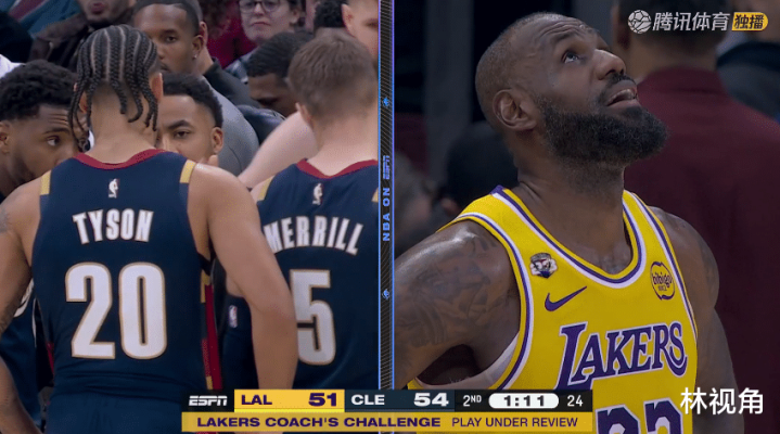 骑士一波4-0取得微弱领先,老詹又被吹了进攻犯规,湖人挑战也失败了。