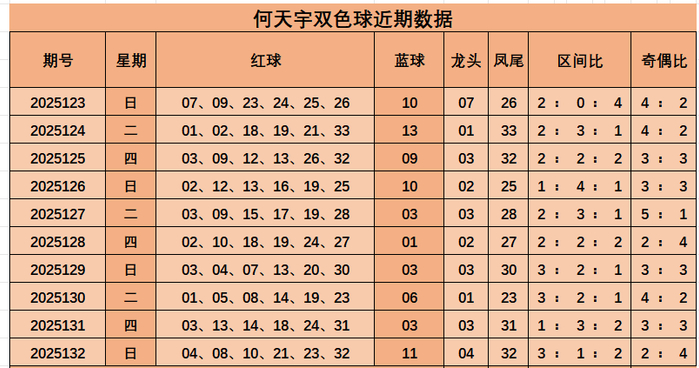 上期回顾红球开出04,08,10,21,23,32,蓝球开出11,龙头04,凤尾32。区间比3:1:2,奇偶比2:4。