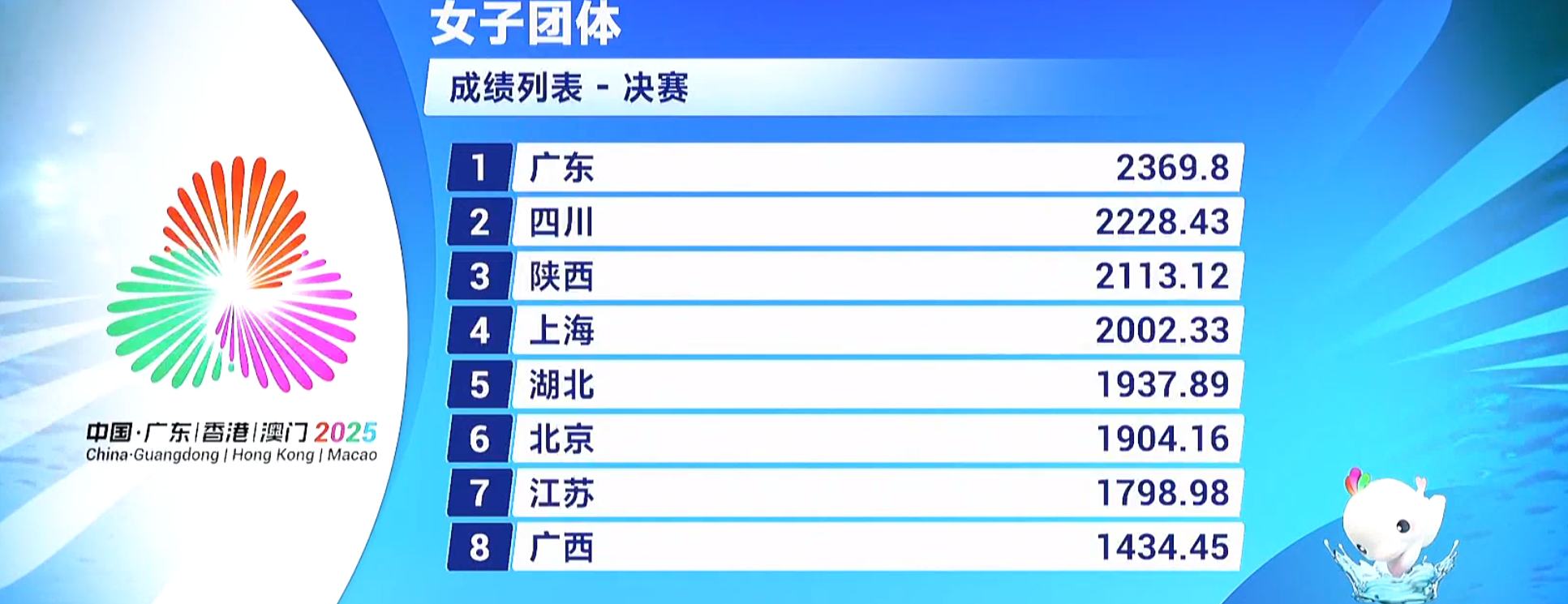 陈艺文、全红婵领衔的广东队在女子3米板、10米台均发挥出色,以绝对优势夺得冠军,实现该项目的卫冕。这也是本届全运会跳水比赛的首金。祝贺!