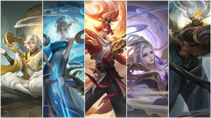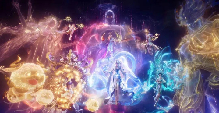 该系列的皮肤背景故事中,众生饱受妖灾霍乱,祈盼虚无的救赎,于是便有了五神兽降世,化为凡人之姿,分守五方天地。