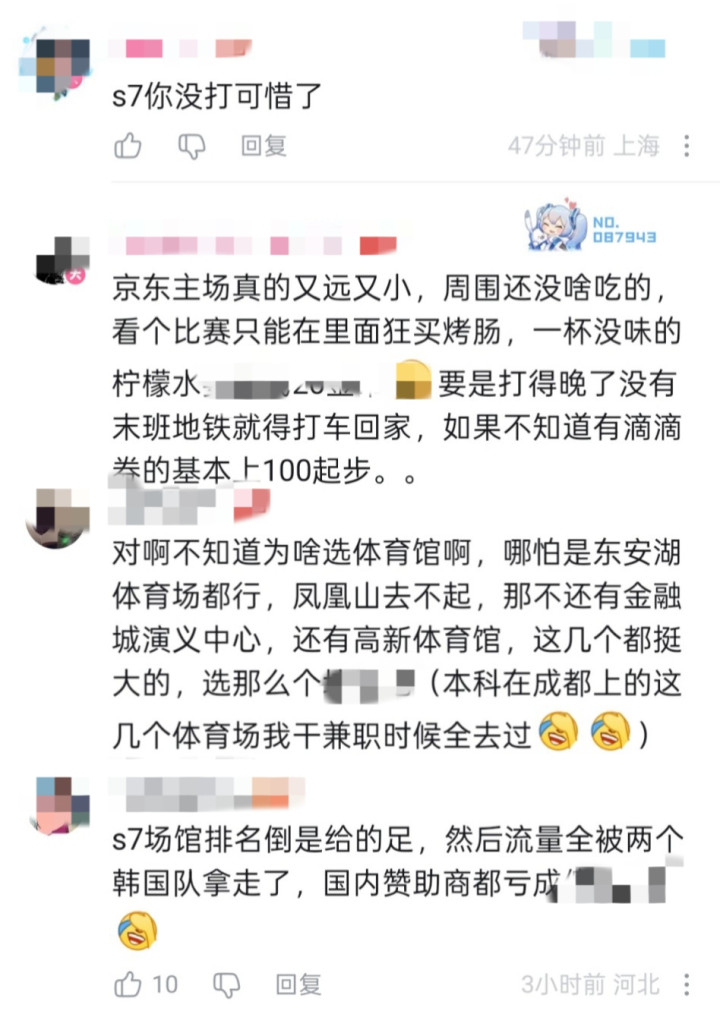 还有网友透露,成都决赛场馆的面积也不大,远不如S7和S10决赛场地,只是一个多功能场馆而已。于是有网友调侃,如果LPL这次不能在主场夺冠,等到下次主场举办全球总决赛的时候,场馆恐怕只会面积更小、更寒酸,毕竟没有成绩,就意味着LPL联盟收入断崖式下滑,自然也就没有资金租借大型体育场馆了。不过也有网友指责Duro“太挑剔”,LCK场馆面积也不大,所以没有资格挑剔LPL联盟官方提供的比赛场地。